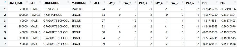 Untuk meneliti data ini, penulis hanya akan menggunakan variabel Bill_, dan Pay_AMT. Hal ini dilakukan untuk menyesuaikan kebutuhan saat ini yaitu memberikan contoh penerapan PCA pada data asli. PCA diperuntukkan untuk variabel numerik kontinu. Sedangkan ketika melakukan reduksi dimensi pada variabel kategorik, anda dapat menggunakan analisis korespondensi/correspondence analysis (CA). Penulis juga tertarik untuk membahas metode tersebut di masa mendatang.